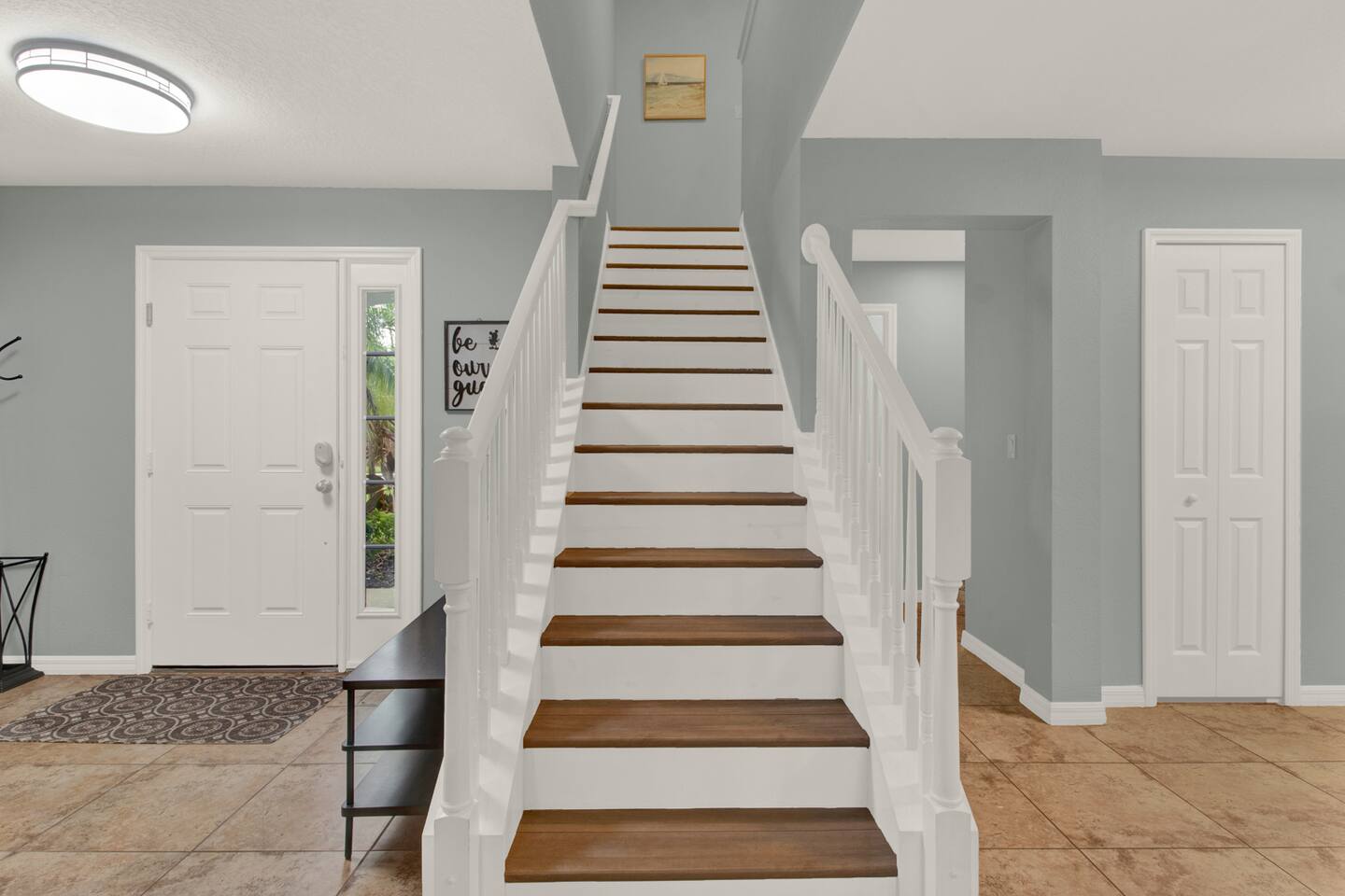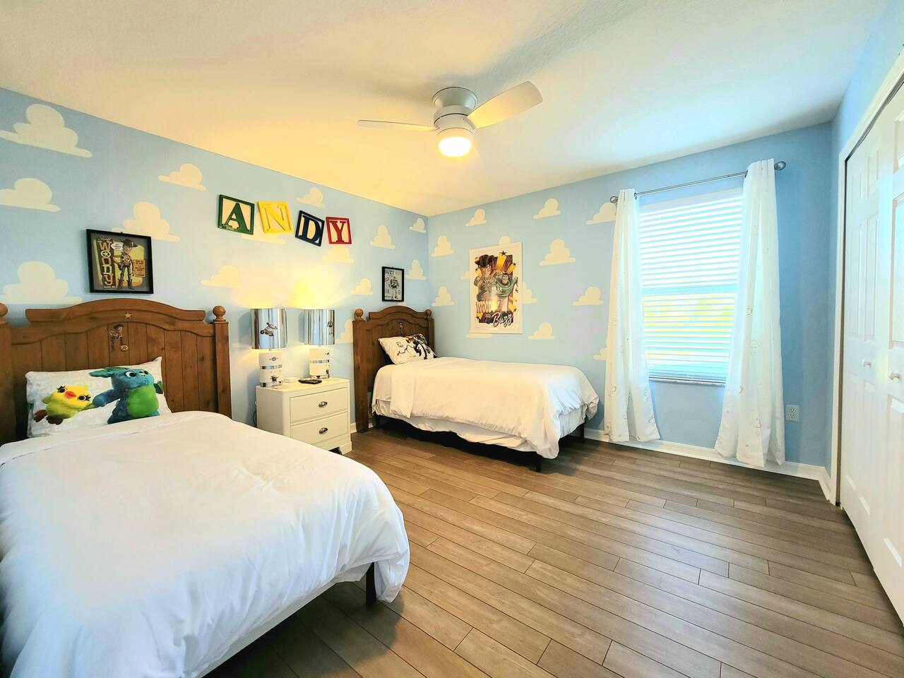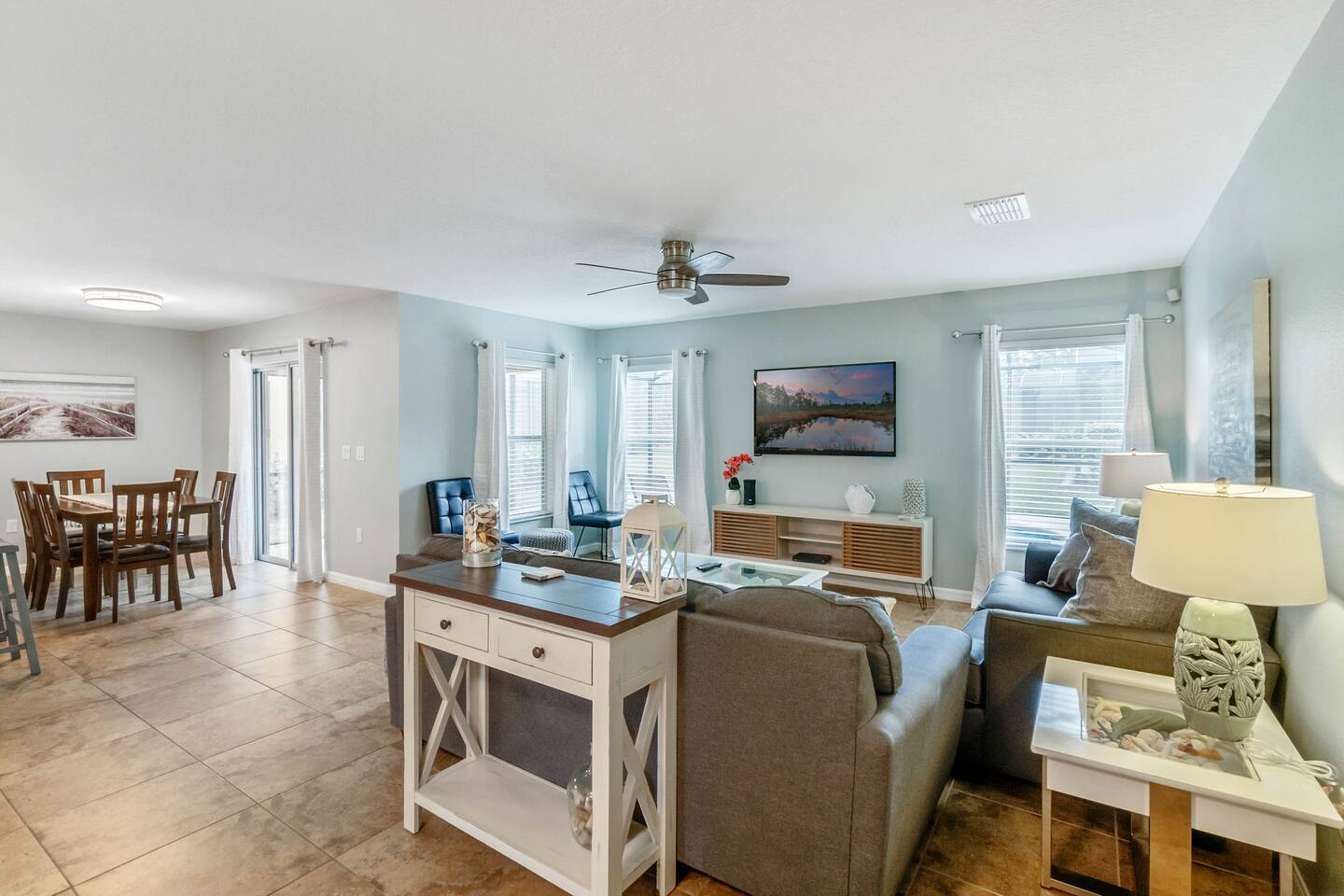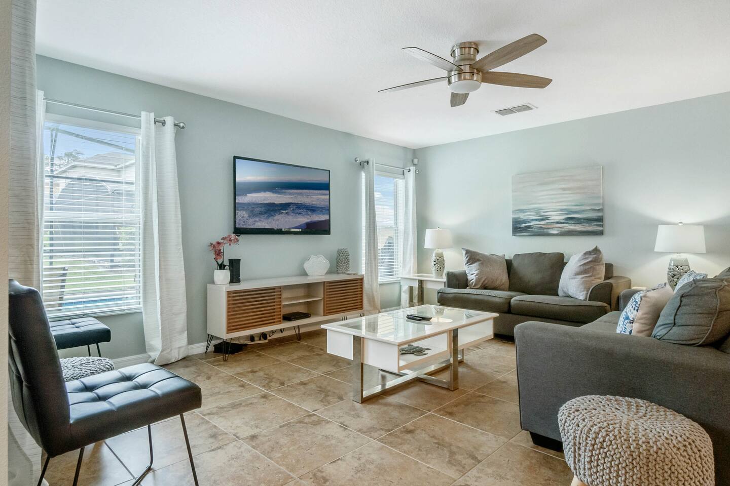This gorgeous updated pool home is perfect for families and friends for a Florida vacation! Located just 5 mi from Disney! Close to Universal Studios! Over 2000 sq ft. Updated themed rooms. Chill in your own heated private pool or enjoy the club house pool of Veranda Palms complete with a water park and splash pad! Work out in the fitness center or walk the gated neighborhood to the new community center, just steps away. Enjoy your private game room with Skee Ball, pool table, and ping pong!