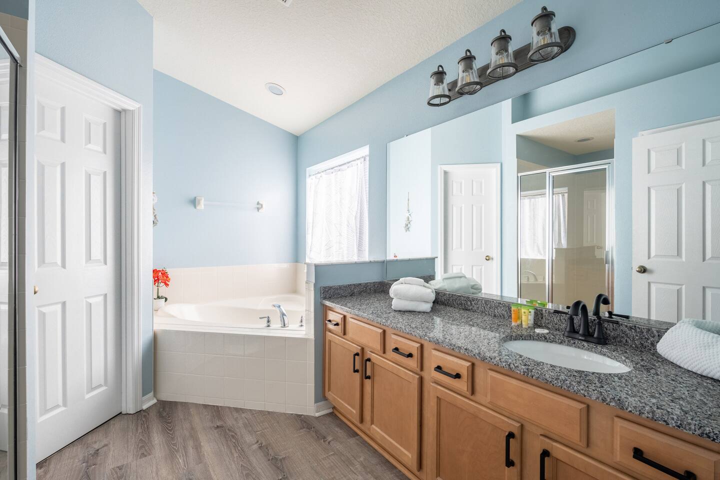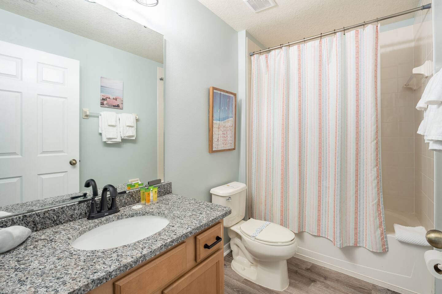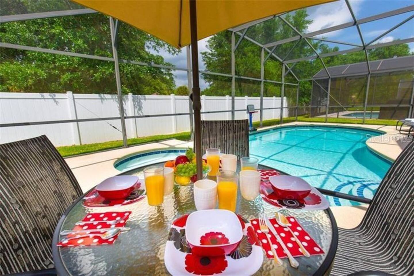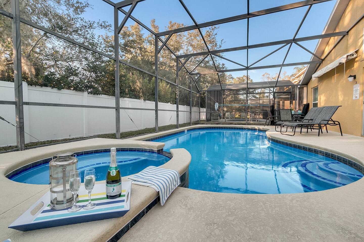 Home: - Private Pool w/ Hot Tub - Game Room - Stocked with Soap, Shampoo, & Conditioners, Dishwasher Detergent, Laundry Detergent, Coffee, & More! - Smart TV's in Living Room and both Master Suites(Netflix & Amazon Prime Capable) - Patio set around Pool - 1 High Chair - Pack & Play Crib - Pool Safety Gate for Children - FAST WiFi & Netflix/Amazon Capable TV's & basic channels - Washer & Dryer in-home (1 Load of detergent is provided) - Gated & Secure Neighborhood -- TONS of beach towels Kitchen: - Blender - Toaster - Coffee Maker (With coffee included) - Full Tableware & Stemware - Pots, Pans, & Cookware - tea kettle - 1 High Chair 4 Bedrooms: - TV's in living room and both masters - Master Bedroom w/king Bed private bath, Second Master w/ full Bed private bath, 2 additional bedrooms with 2 single beds in each room Pool Deck: - 2 Chaise Lounge Chairs - Heating Optional Pool & Jetted Hot Tub - Patio Set w/ Seating for 4 - Screened in for bug free fun! Community Club House: - 3 minute walk from home or quick drive - Heated community pool, Jacuzzi, & kids splash pad - Beautiful furnishings inside and outside - Fitness center - Showers, changing rooms, & restrooms You also have your own personal entrance from Veranda Palms in to the 1000 acre Shingle Creek Nature Reserve where you can explore miles of Nature Trails, try your hand at kayaking or canoeing or simply relax with a book on the pavilion in the midst of the beautiful orange groves. Guest access You have access to the entire place and private private pool/hot tub. You also have access to the shared community pool, fitness facility, and lounge area just a short three minute walk away Other things to note Pool: The pool heating can be turned on upon request prior to arrival for an additional cost. Pool and Spa or only Spa heat are available.