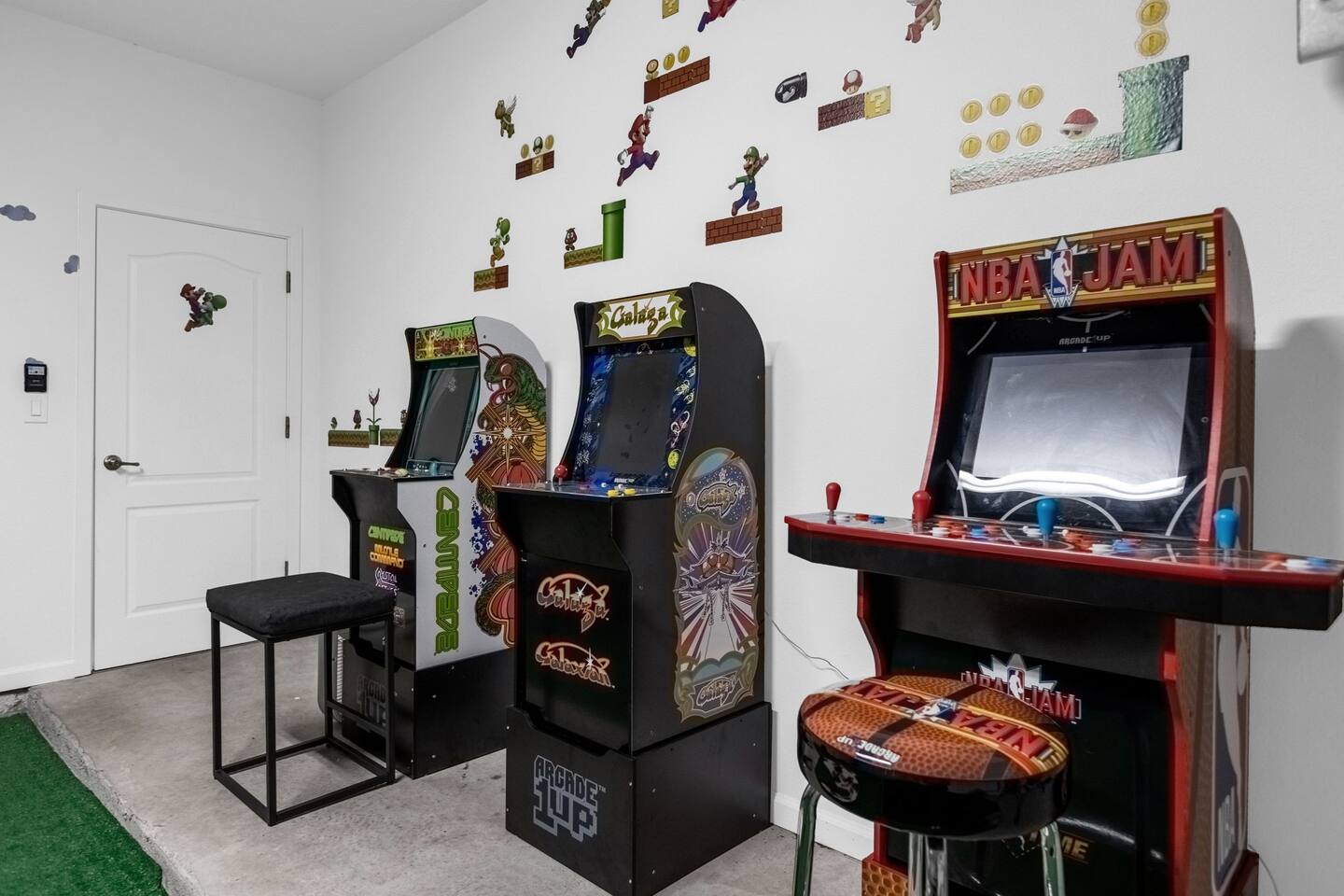 Home: - Private Pool w/ Hot Tub - Game Room with arcade, ping pong, and lawn games! - Stocked with Soap, Shampoo, & Conditioners, Dishwasher Detergent, Laundry Detergent, Coffee, & More! - Smart TV's in each bedroom and both living areas(Netflix & Amazon Prime Capable) - Patio set around Pool - 1 High Chair - Pack & Play Crib - Pool Safety Gate for Children - FAST WiFi & Netflix/Amazon Capable TV's - 2 sets of Washer & Dryer in-home on both floors (1 Load of detergent is provided) - Gated & Secure Neighborhood -- TONS of beach towels Kitchen: - Blender - Toaster - Coffee Maker (With coffee included) - Full Tableware & Stemware - Pots, Pans, & Cookware - tea kettle - 1 High Chair 6 Bedrooms: - Smart TV's in living rooms and every bedroom - Master Bedroom w/king Bed private bath on first floor. Second bedroom w/ queen bed also downstairs with shared bath. 4 additional bedrooms with upstairs. One with bunk/full bed under with jack and jill bath shared with a full sized bedroom. 2 more bedrooms with full beds. Pool Deck: - 2 Chaise Lounge Chairs - Heating Optional Pool & Jetted Hot Tub - Patio Set w/ Seating for 4 - Screened in for bug free fun! Community Club House: - 1 minute walk from home or quick drive - Heated community pool, Jacuzzi, & kids splash pad - Beautiful furnishings inside and outside - Fitness center - Showers, changing rooms, & restrooms You also have your own personal entrance from Veranda Palms in to the 1000 acre Shingle Creek Nature Reserve where you can explore miles of Nature Trails, try your hand at kayaking or canoeing or simply relax with a book on the pavilion in the midst of the beautiful orange groves. Guest access You have access to the entire place and private private pool/hot tub. You also have access to the shared community pool, fitness facility, and lounge area just a short three minute walk away Other things to note Pool: The pool heating can be turned on upon request prior to arrival for an additional cost. Pool and Spa or only Spa heat are available.