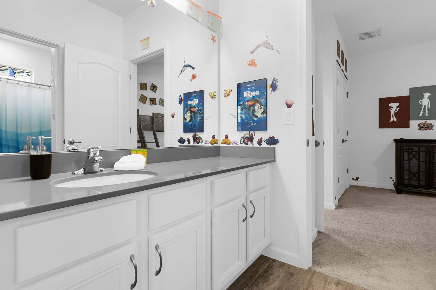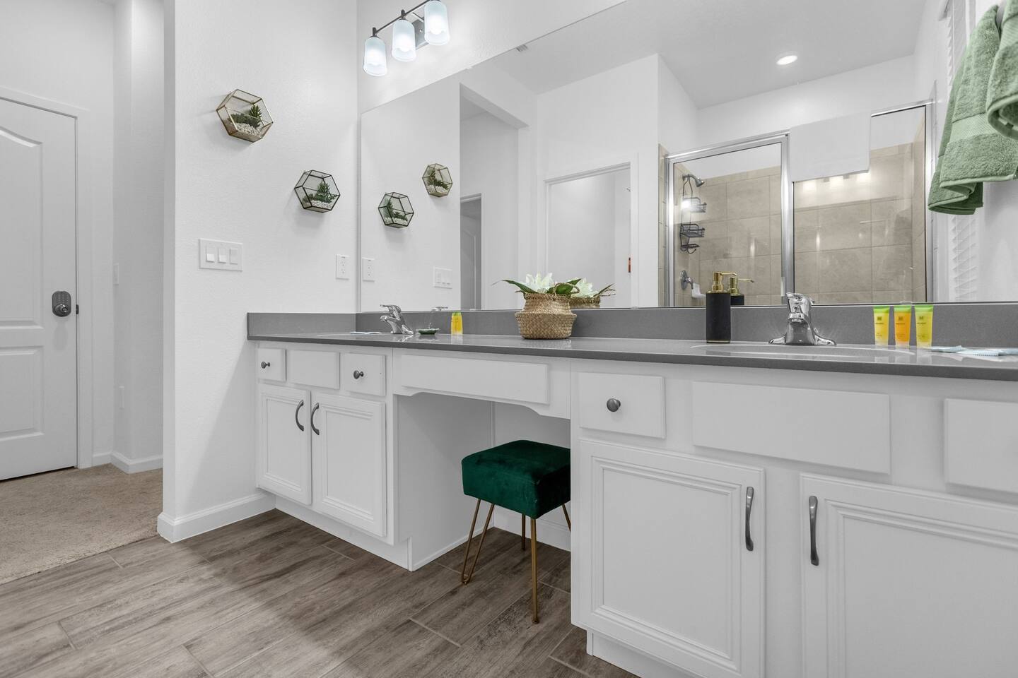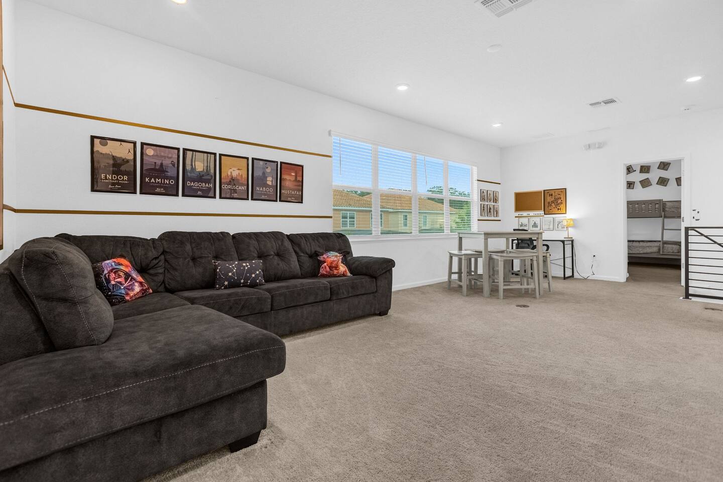 JUST ADDED! (Check out our other reviews) New Construction!!! 3000ft2! Welcome to our luxury 6-BR private pool home near Disney World, Universal Studios, and Sea World! With 8 beds, it sleeps 15 people comfortably. Enjoy the private heated pool, hot tub, and game room with ping pong, cornhole, and arcade. Located in Veranda Palms community, you also have access to a large pool, clubhouse, gym, and splash pad. Perfect for large families or groups seeking a memorable Orlando stay. Book now!